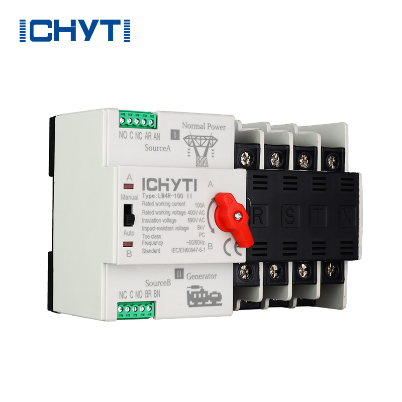 سوئیچ انتقال خودکار 100 آمپر ICHYTI کارخانه چین برای سیستم های منبع تغذیه اضطراری با ولتاژ 400 ولت و 100 آمپر AC در 50 یا 60 هرتز ایده آل است. طراحی جمع و جور، قابلیت انتقال قابل اعتماد، نصب و نگهداری آسان، و طول عمر طولانی آن را به یک انتخاب محبوب تبدیل کرده است. سوئیچ انتقال خودکار 100 آمپر برای کاربردهای مختلف که منبع تغذیه مداوم ضروری است مناسب است و می تواند هم به صورت برقی و هم به صورت دستی کار کند. سوئیچ انتقال خودکار 100 آمپر سری LW2R با الزامات IEC60947-6-1 برای تابلوهای ولتاژ پایین و چرخ دنده های کنترل مطابقت دارد.