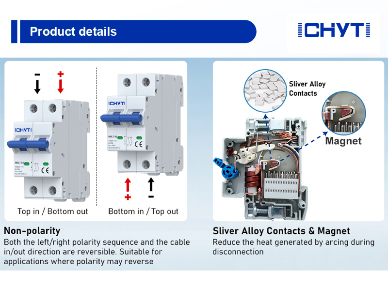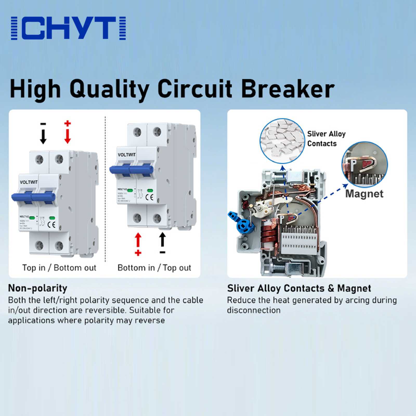 یکی از تولید کنندگان چینی کلید قطع کننده مدار DC که کیفیت عالی را با قیمت رقابتی ارائه می دهد، CHYT است. با خیال راحت تماس بگیرید. جریان نامی آن نباید از 63 آمپر تجاوز کند.